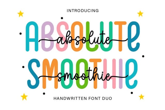 This font is made for personal use. Get the full version of the fonts if you want to use it for commercial purposes by purchasing the licenses here: https://creativemarket.com/DN-Creative/290750484-Absolute-Smoothie-Duo?u=fontlot123