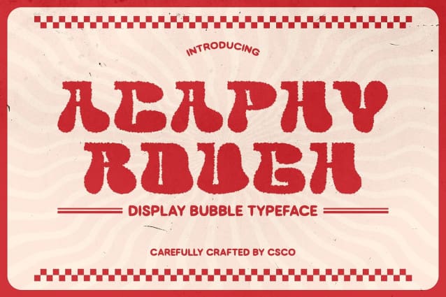 Versatile for Creative Projects From playful branding to standout visuals, Acaphy Rough’s combination of funky bubble shapes and rough texture makes it versatile for a variety of creative applications. Its bold and energetic look is sure to enhance any design with a vibrant and unique flair.