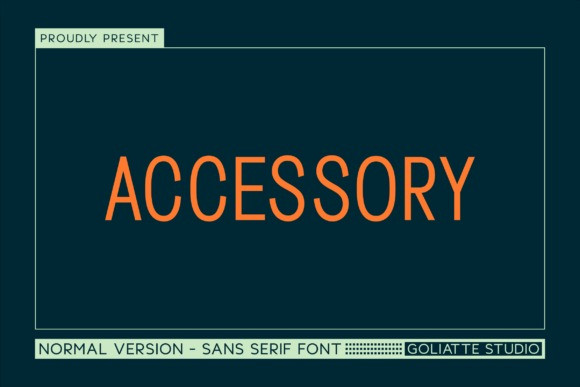 Accessory Font is a bold, all-caps sans serif font designed for the modern designer. With its clean lines and minimalist aesthetic, this typeface exudes strength and authority. It is perfect for projects that require a sense of professionalism and impact. Whether you’re designing a logo, website, or print material, Accessory makes a statement with its sharp, crisp edges.