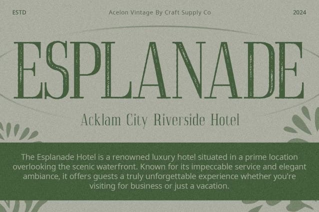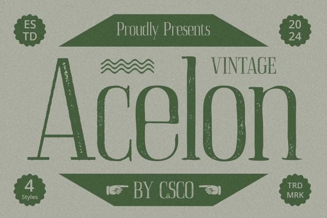 Timeless Charm with a Modern Edge This font seamlessly blends retro charm with contemporary sophistication, making it an ideal choice for designers looking to add character and style to their projects. With its unique design and versatile application, Acelon Vintage offers endless possibilities for creative expression.