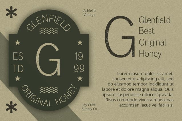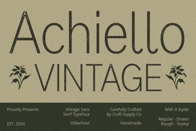 Achiello Vintage Font: Bridging Professionalism and Vintage Appeal. Formal Sans Serif Design Achiello Vintage boasts a formal sans serif design that aligns perfectly with corporate design styles. Its clean lines and balanced proportions exude professionalism and sophistication.