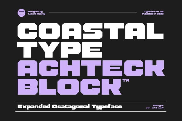 Achteck Block Font, where modernity meets strength! Up your design game with the extended octagonal edges of this powerful font. Perfect for logos, brands, promotions, posters, book covers, magazine layouts, social media, headlines, headlines, movie titles and website layouts. Be bold with AchteckBlock: unleash your strength, define it