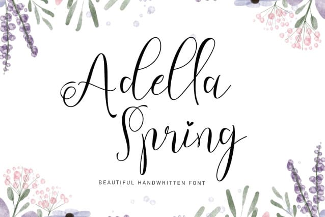 Adella Spring Font is a beautiful and elegant handwritten font. This font is equipped with uppercase, lowercase, ligatures, numerals, punctuation, and multilingual support. Very suitable for weddings, invitations, parties, spring, summer, banners, branding, stickers, logos, and others.