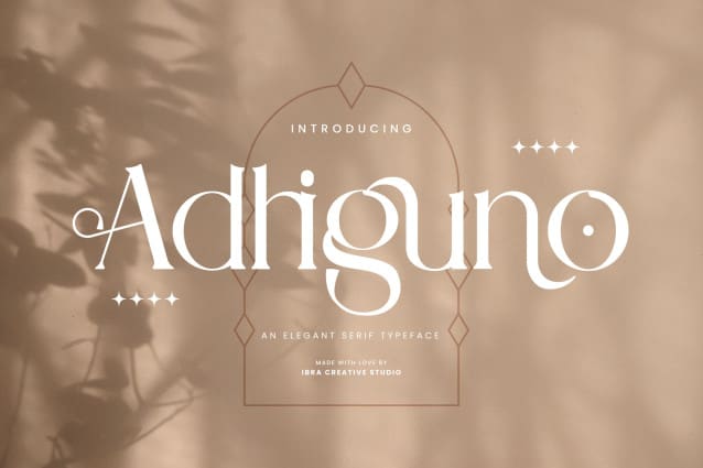 Adhiguno Font is used only for demos (Demo license). If you want to use this font for commercial use please contact: https://ibracreative.com/index.php/product/adhiguno-an-elegent-serif-typeface/