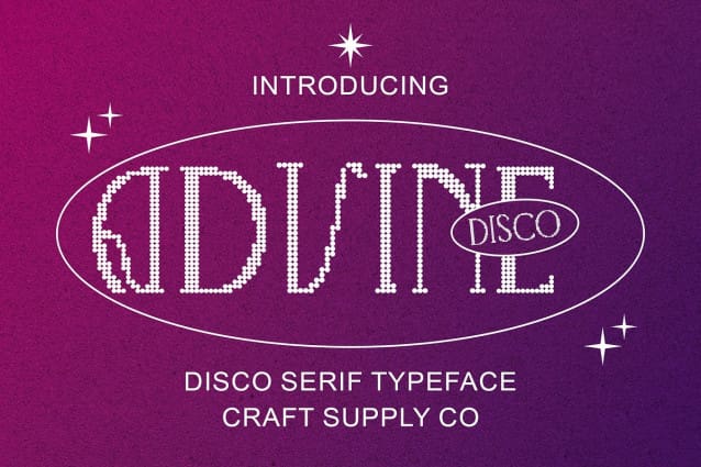 Advine Disco Font: A Groovy Serif Experience. Inspired by Disco Lights Advine Disco channels the vibrant energy of disco lights, infusing every character with dynamic flair and excitement. Its design captures the essence of disco’s glitz and glam.