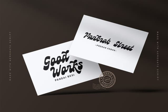Aerogate Script Font is a bold rounded script font inspired by our best selling font called aerokids. Aerogate is a bold rounded script font with a bold vintage style inspired by beautiful classic handwriting. made with care and fun without eliminate characteristics of our font.