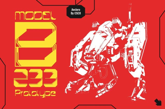 Aestero Futuristic Font, drawing from Gundam and sci-fi aesthetics, embodies a cutting-edge design for a bold display impact.