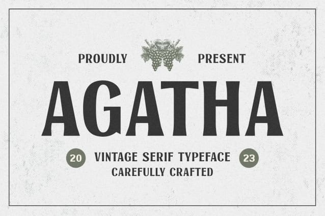 Agatha Display Font, a vintage serif typeface that embodies the timeless elegance of a bygone era. With its ornate and classic letterforms, “Agatha” adds a touch of vintage charm to any project. Each character is meticulously crafted to infuse your designs with a sense of nostalgia, making it ideal for retro branding, antique-inspired posters, classic book covers, and more.