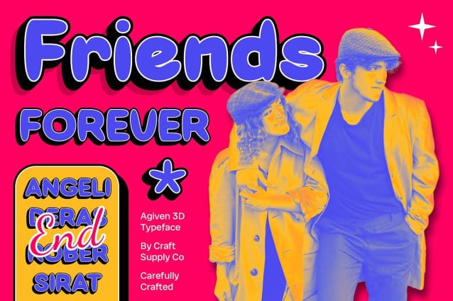 With its bubbly design and playful shapes, Agiven 3D offers a fresh take on display fonts. The bubble shapes create a charming and whimsical look, perfect for designs that demand attention and convey a sense of fun and joy.