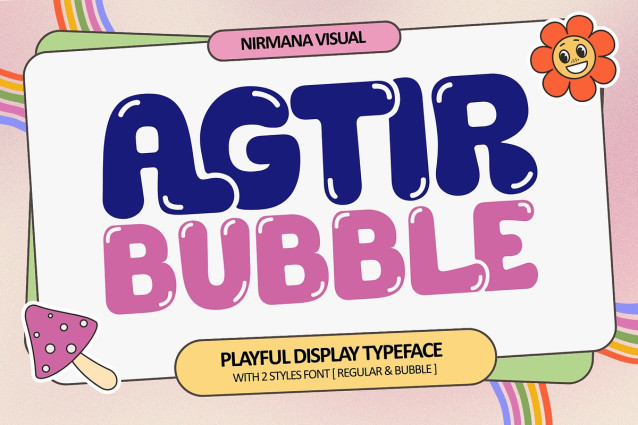 Agtir Bubble Font is a playful bubble-style font designed to bring joy and personality to your designs. With its rounded, soft shapes and cheerful look, it’s perfect for logo branding, product packaging, labels, kids-themed projects, social media graphics, and more. Agtir Bubble adds a fun, friendly vibe that helps brands stand out while keeping designs light, bold, and memorable. Perfect for creative projects that need a touch of happiness and charm.