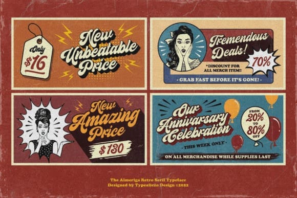 Aimeriga Retro Font is a vintage script font with fat features on its body, a font that is suitable for branding food, fashion or any brand that requires a vintage style. In addition to vintage, this font is also relaxed and casual and easy to process in layouts according to design needs.