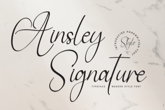 Ainsley Signature is a new modern script calligraphy typeface with its own unique flow and elegant personality. Is suitable for all your design project needs such as logo design, branding, covers, posters, and more.