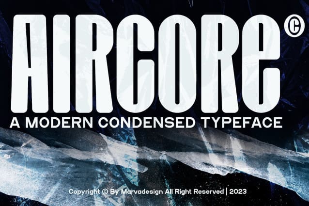 This font is made for personal use. Get the full version of the fonts if you want to use it for commercial purposes by purchasing the licenses here: https://creativemarket.com/Marvadesign/278570228-Aircore-A-Modern-Condensed-Sans?u=fontlot123