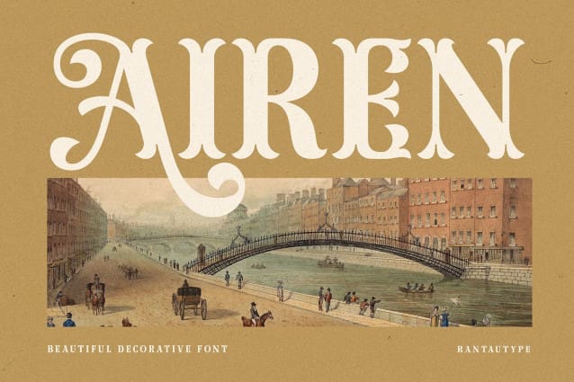 Airen Decorative Font is beautiful display typeface inspired by nineteenth century type we keep this font look retro and Memoriable. Airen come with more alternate and ligature to make it more option design. Airen support dozens of languages which use the Latin and Greek alphabets.