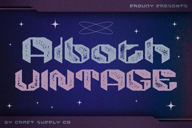 Alboth Vintage Font: Retro Futuristic Geometry. Geometric Robot Inspiration Alboth Vintage draws inspiration from geometric shapes and the sleek lines of robots, resulting in a futuristic and eye-catching design.