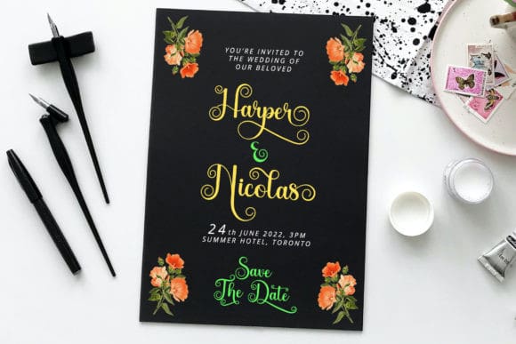 Aliyah Script Typeface is a thin lettered and graceful script font. Fall for its ravishing style and use it to create gorgeous wedding invitations, beautiful stationary art, eye-catching social media posts, and much more! This font is PUA encoded which means you can access all glyphs and swashes with ease!