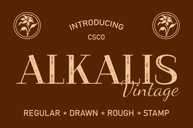 Timeless Sophistication This font brings forth a classic serif typeface with a modern twist, featuring high contrast and vintage stamp rough effects. Its versatility and timeless sophistication make it a valuable addition to any designer’s toolkit. Experience the timeless charm of Alkalis Vintage and elevate your designs with its classic elegance.
