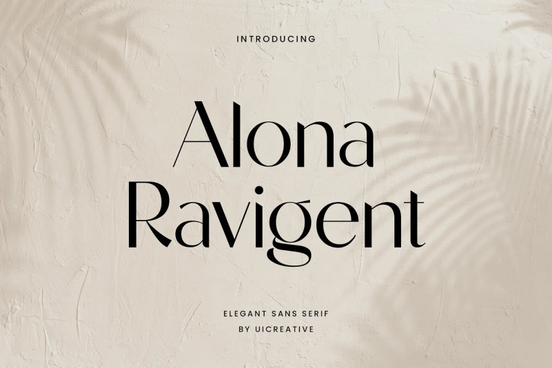 Alona Ravigent Font – Elegant Sans Serif Font. Elegant Sans Serif font that feels beautiful classy, elegant, and modern. This font is ideally suited for a wide variety of projects, such as signature, stationery, logo, wedding, typography quotes, magazine or book covers, website headers, clothing, branding, packaging design, and more. Also, fashion-related branding or editorial design displays both masculine and feminine qualities.