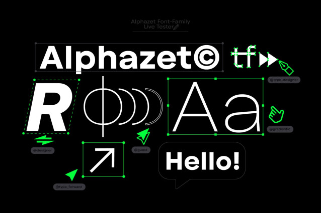 The family includes 9 weights (Thin to Black), each with matching oblique italics. It is available in all necessary formats, including a single variable font file for flexible use. Alphazet suits a range of applications, from body text to headlines. Its proportions and spacing support readability at small sizes, while its structure remains strong at larger scales, such as in signage and posters.