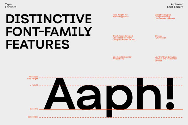 Developed by Type Forward and Luboslav Boyanov, Alphazet is based on geometric principles and designed for practical use. Its high x-height and stable proportions support legibility across a range of sizes. The typeface performs reliably in both extended reading and short, impactful text.