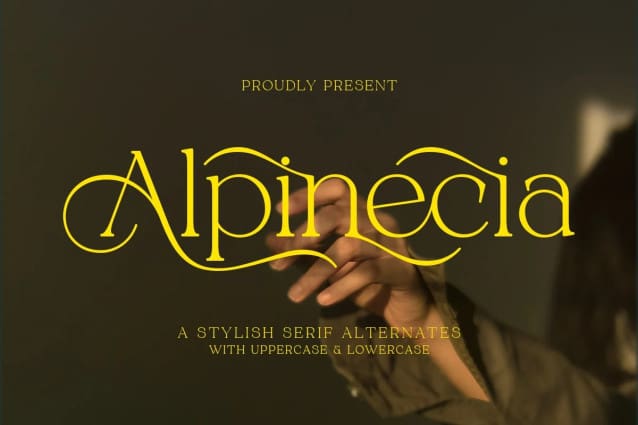 Alpinecia Font, Trendy, classy & modern stylish serif font for your luxury projects. Alpinecia elegant, fashion and classic font style will be a perfect fit for any branding project. Many alternatives and bindings will help you create a unique and original logo or website header design!