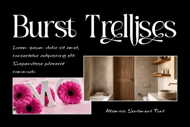 Altamira Sentiment – Elegant Serif Font is a luxurious serif display font that blends classic sophistication with modern flair. Each letterform is crafted with refined curves, elegant contrast, and delicate decorative swashes that bring a sense of romance and artistry to your typography. The design combines sharp serifs with graceful flourishes, evoking timeless beauty and expressive emotion — ideal for projects that require both charm and class.