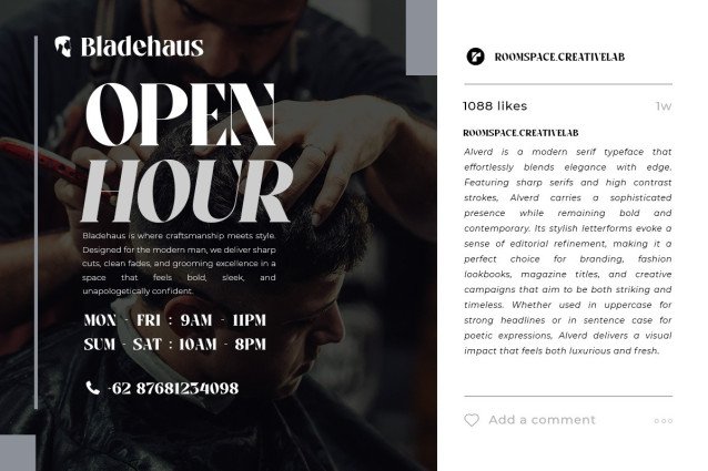 With its powerful presence and timeless character, Alverd is ideal for creating premium visual identities, luxury packaging, posters, and anything that demands a bold, sophisticated touch. Whether you’re working on a modern brand, a historical concept, or a bold statement piece, Alverd delivers unmatched style and confidence.