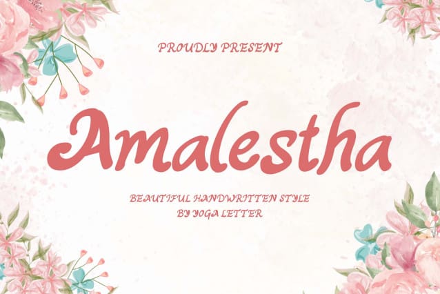 Amalestha Font is a beautiful and cute handwritten font. This font is equipped with uppercase, lowercase, numerals, punctuation, and multilingual support. Very suitable for weddings, invitations, engagements, certificates, stickers, banners, posters, prints, branding, logos, Christmas, Halloween, Valentine’s, lovely, and others.