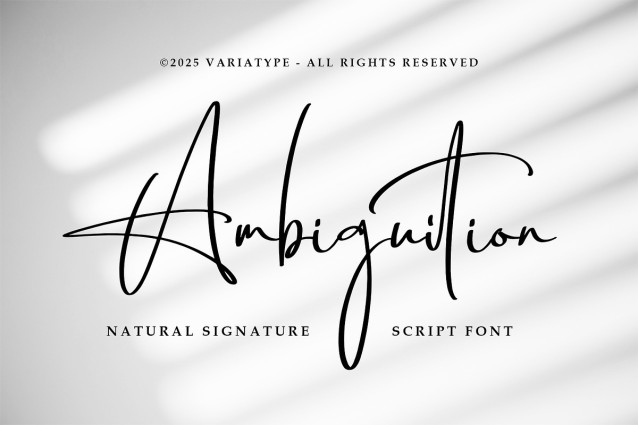 This font is used only for demos (Demo license). If you want to use this font for commercial use please contact: https://creativemarket.com/variatype.id/291520957-Ambiguition-Natural-Signature-Font?u=fontlot123