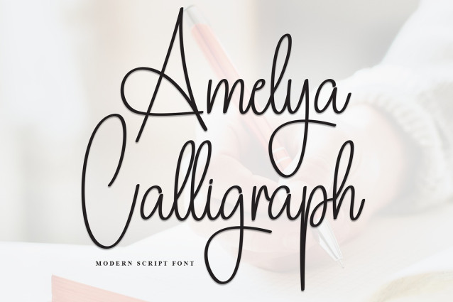 Amelya Calligraph Script Font A popular and professional script font. Modern and elegant, this typeface is made of beautiful creative strokes.This font is perfect for your creative ideas, both formal and informal. It has a modern style with a touch of creative ideas that is very suitable to be applied anywhere that requires creative ideas such as invitation cards,letterheads, website logos, social media, banners, advertisements, brochures, packaging products, leather products, and any product that requires writing.