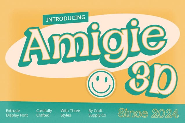 Amigie 3D Font: Embracing Funky Retro Vibes. Funky and Retro Appeal Amigie 3D exudes a vibrant and retro-inspired aesthetic, infusing your designs with playful and nostalgic vibes that harken back to the funky styles of yesteryears.