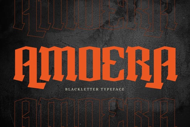 Amoera Blackletter Font a simple and modern gothic font inspired by the classic line with the style of the script during the Midle Ages. Recognized for its dramatic and ornate appearance, this typeface features sharp, angular lines and dense, dark strokes that evoke a sense of history, tradition, and formality. Amoera offers beautiful typographic harmony for a diversity of design projects, including logos & branding, social media posts, advertisements & product designs.