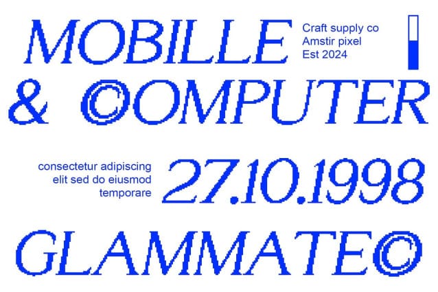 Amstir Pixel Font : Pixelated Serif Charm, a distinctive serif style characterized by square-shaped elements, reminiscent of pixel art. This unique design adds a playful touch to any display project.