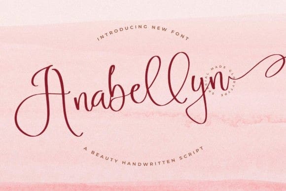 Anabellyn Script Font is an enchanting handwritten font. This versatile script font has a wide spectrum of applications ranging from greeting cards to headlines and is guaranteed to add a romantic feel to your next project.