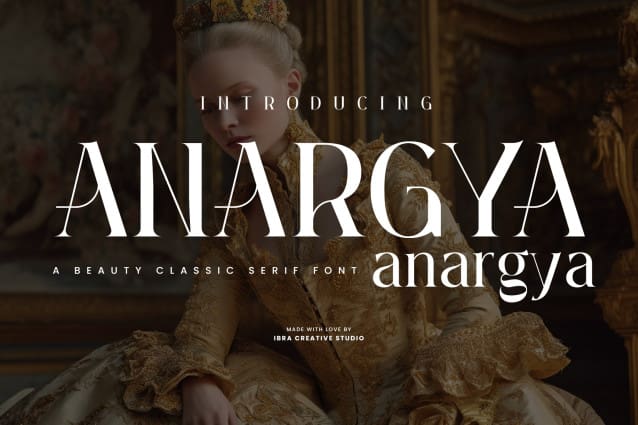 Anargya Font is a timeless beauty classic serif typeface that exudes elegance and sophistication. Its meticulously crafted letterforms showcase a harmonious balance between thick and thin strokes, creating a sense of timeless grace and legibility. With a refined, high-contrast design, Anargya Font brings a touch of traditional charm to contemporary designs, making it a versatile choice for branding, editorial, and luxury aesthetics. Its gracefully tapered serifs and graceful curves imbue it with an air of sophistication and refinement, making it a perfect choice for projects that demand a timeless, classic typographic style.