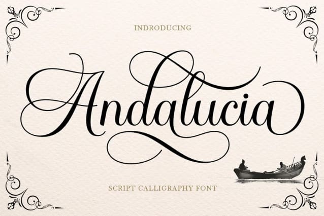 Andalucia Font is a calligraphic script font that comes with beautiful alternate characters. copper plate calligraphy mix with handlettering style. Designed to convey stylish elegance. Andalucia Font is attractive because it is subtle, clean, feminine, sensual, glamorous, simple and very easy to read. The classic style is very suitable to be applied in all types of formal work such as invitations, labels, menus, logos, fashion, make up, stationery, letterpress, romantic novels, magazines, books, greeting/wedding cards, packaging, labels. Andalucia features a glyph and alternate characters. including multiple language support. It features OpenType with styling, binding, and character strokes, allowing you to mix and match letter pairs to match your design. Files include: