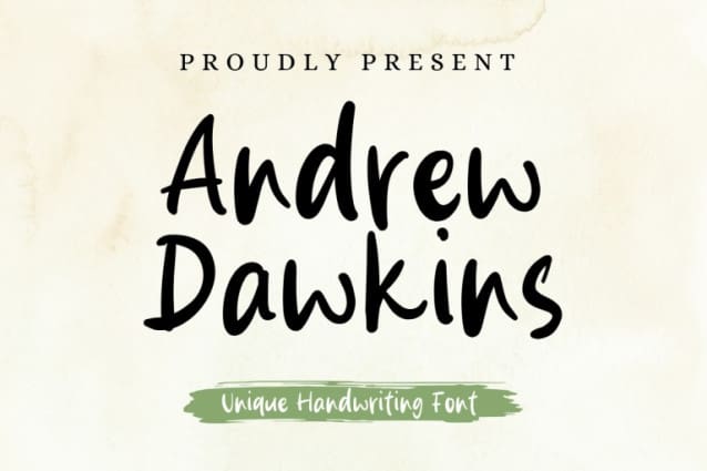 Andrew Dawkins font, a handwritten style font created directly by hand, resulting in beautiful, natural, and unique writing. AndrewDawkins font is very suitable for branding, logotypes, magazines, quotes, wedding invitations, crafts, printed designs, and others.