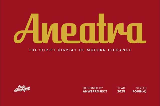 Aneatra Font is a modern script display font that blends bold style with timeless elegance. Designed for logos, branding, posters, packaging, and editorial designs, Aneatra offers a unique balance of smooth curves and sharp edges that make every word stand out. With four versatile styles, this font is perfect for creating eye-catching headlines, stylish social media graphics, and sophisticated design projects. Whether you’re working on a contemporary brand identity or a vintage-inspired layout, Aneatra brings a touch of modern elegance to your typography.