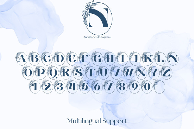 Anemone Monogram Font is a beautifully bold monogram font inspired by the natural elegance of anemone flowers. Each letter is adorned with detailed floral elements, blending sophistication and creativity in a classic serif structure. Ideal for wedding stationery, personalized gifts, logo design, branding, and seasonal crafts, this monogram font brings a romantic and organic touch to any project.