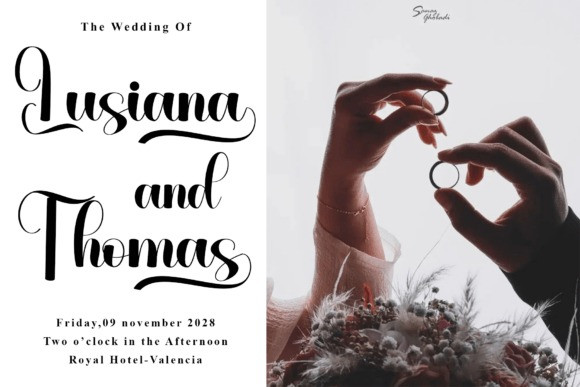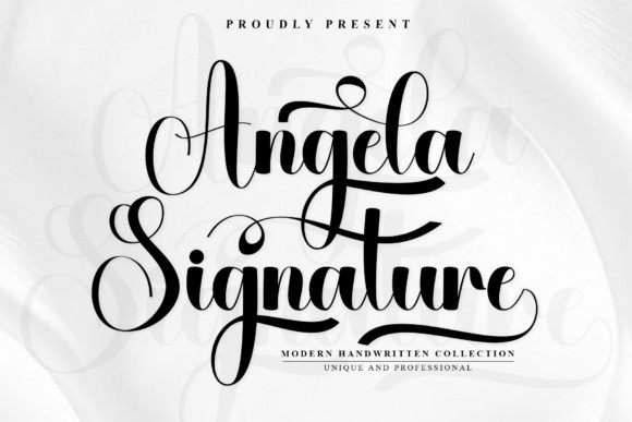 Angela Signature Font is a modern script typeface that exudes charm and sophistication. Its graceful curves and refined letterforms are defined by tall, expressive ascenders, generous loops, and fluid connections, perfectly capturing the spirit of celebratory handwriting with a contemporary twist. The striking contrast between bold downstrokes and delicate upstrokes creates a captivating rhythm, ensuring the font is both decorative and highly legible.