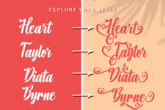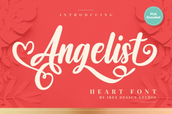 Angelist Heart Font is a romantic and sweet calligraphy typeface with characters that dance along the baseline. It will add a luxury spark to any design project that you wish to create! This font is PUA encoded which means you can access all of the amazing glyphs and ligatures with ease!