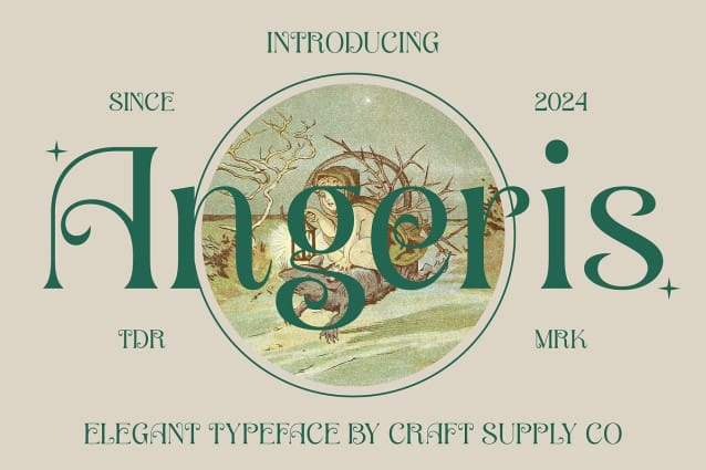 Timeless Retro Appeal This font combines the elegance of serif typography with retro-inspired elements, making it an ideal choice for designers seeking to infuse their projects with a hint of Art Nouveau charm. With its versatile application and timeless appeal, Angeris Font adds a touch of vintage sophistication to any design endeavor, ensuring it stands out with its unique retro allure.