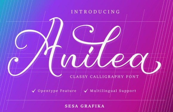 Anilea Calligraphy Font is a delicate, elegant, and flowing handwritten font perfect for your favorite projects. Fall in love with its incredibly distinct and timeless style, and use it to create spectacular designs!