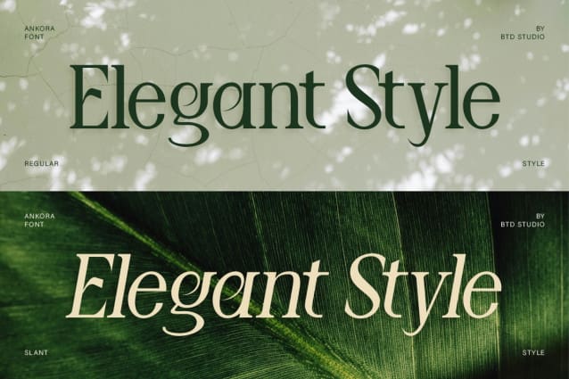 Ankora Font, our elegant serif that show the elegance and class style. The regular and slant style from this typeface brings a touch of timeless beauty. And the elegance of ligature make this typeface ideal for creating a polished and professional look such as high end branding, editorial design, luxurious invitation and etc.