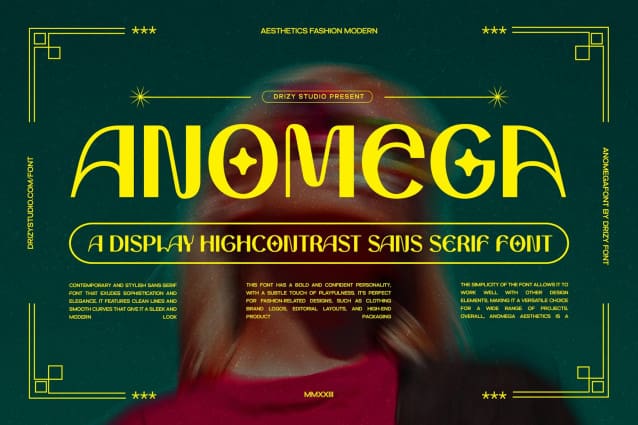 Anomega Font – A high contrast sans serif display font from Drizy Studio. Take your designs to a new level with Anomega, the high-contrast sans serif font that grabs attention and delivers impact!