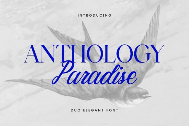 Anthology Paradise Font Duo – The modern display font feels beautiful classy, elegant, and stylish. This font is ideally suited for a wide variety of projects, such as signature, stationery, logo, wedding, typography quotes, magazine or book covers, website headers, branding, and more. Also, fashion-related branding or editorial design displays both masculine and feminine qualities.