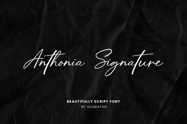 This font is made for personal use. Get the full version of the fonts if you want to use it for commercial purposes by purchasing the licenses here: https://creativemarket.com/uicreative/14498594-Anthonia-Signature-Font?u=fontlot123