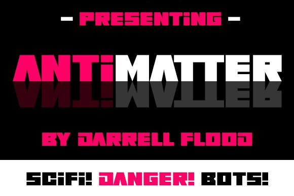 Antimatter Display Font, a futuristic sci-fi font in a bold, square, robotic style. Perfect for alien encounters, high tech themes and general use!