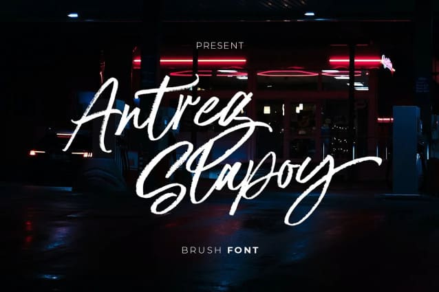 Antreg Slapoy Font – A handwritten brush font with authentic dry brush strokes drawn on paper. Perfect for logo design, poster design, social media, typography quotes over photos, book covers and packaging designs.