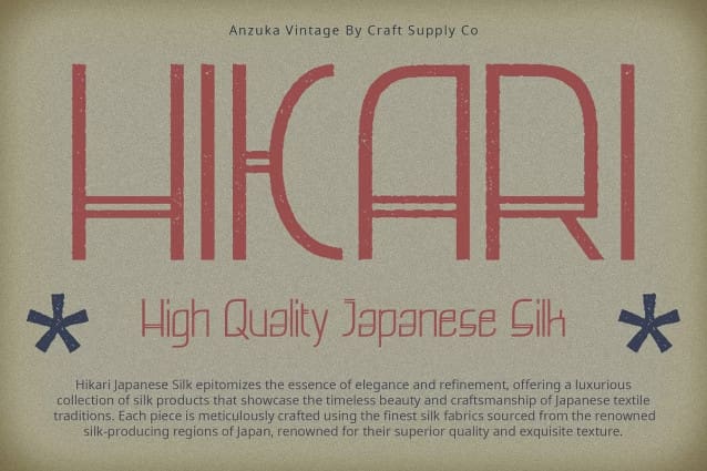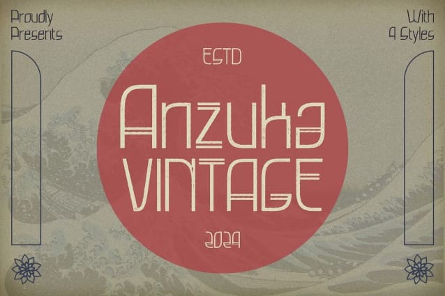 Anzuka Vintage Font: A Tribute to Art Deco Elegance. Geometric Display Design Anzuka Vintage boasts a striking geometric display design, drawing inspiration from the iconic Art Deco movement. Its clean lines and bold shapes capture the essence of the era.